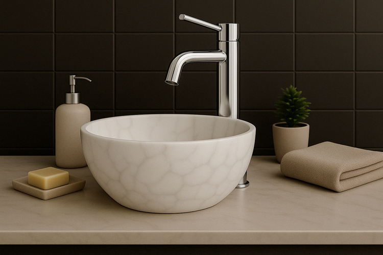 Umyvadlová baterie s perlátorem značky Silla bude ideálně ladit s keramickými umyvadly i těmi vyrobenými z konglomerátu. V balení jsou všechny potřebné prvky pro montáž - připojovací hadice a montážní sada.