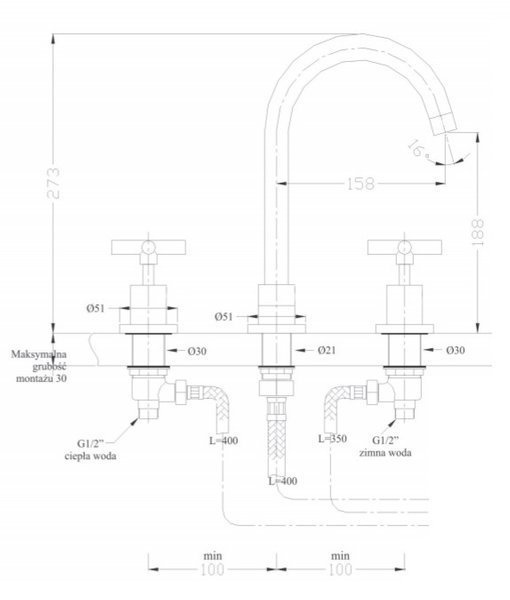 UMYVADLOVÁ BATERIE VERANNI 3-OTVOROVÁ SEM-1106G ZLATÁ