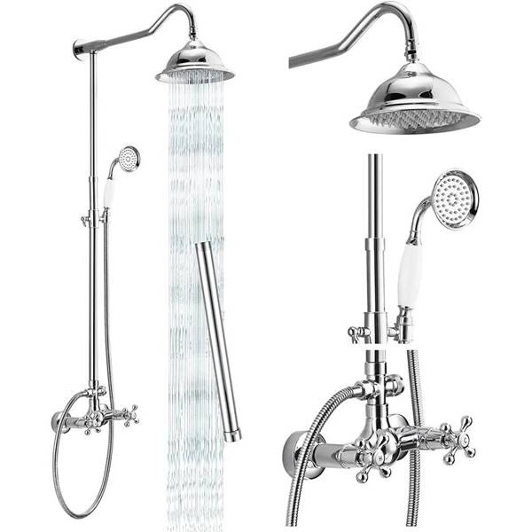 Nástěnná sprchová sada ve verzi Premium, která se vyznačuje nejvyšší kvalitou výroby. Baterie je vyrobena z mosazi a celá je pokryta chromovou vrstvou. Keramická kartuše je zárukou bezproblémového provozu po dlouhou dobu. Baterie s dešťovou sprchou je navržena ve stylu RETRO.