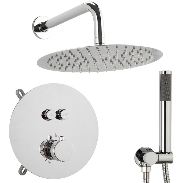 Podomítková sprchová sada v prémiové verzi, která se vyznačuje nejvyšší kvalitou výroby. Baterie je vyrobena z mosazi a celá sada je dokončena lesklým chromem. Keramická kartuše je zárukou bezporuchového provozu po dlouhou dobu. Baterie s dešťovou sprchou je navržena v moderním stylu, který připomíná nejnovější světové trendy v oblasti interiérového vybavení. Představuje dokonalé spojení krásného stylového tvaru s vysokou kvalitou provedení a jednoduchostí použití.