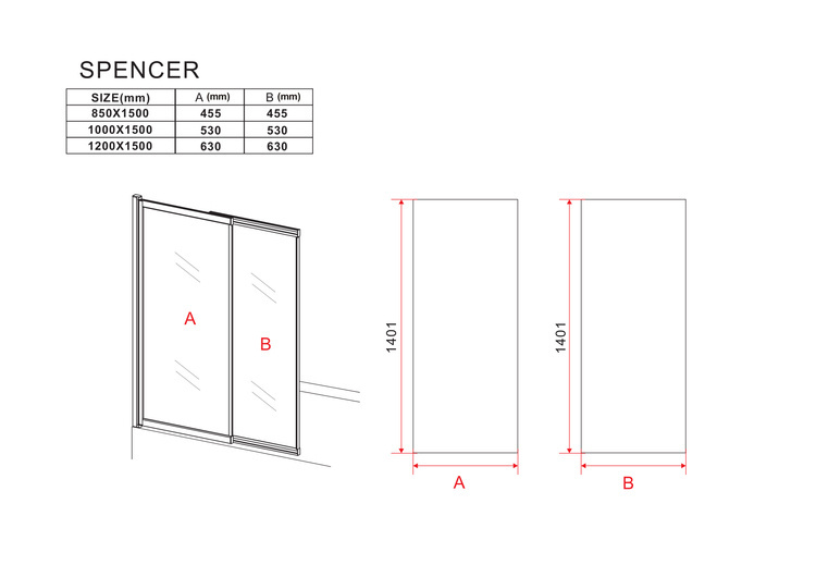 SPENCER 2-KŘÍDLOVÁ VANOVÁ ZÁSTĚNA 85X150 POSUVNÁ ČERNÁ