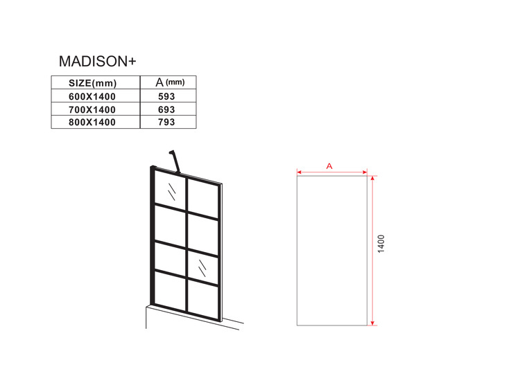 VANOVÁ ZÁSTĚNA MADISON+ 1-KŘÍDLOVÁ 70X140 FIX ČERNÁ