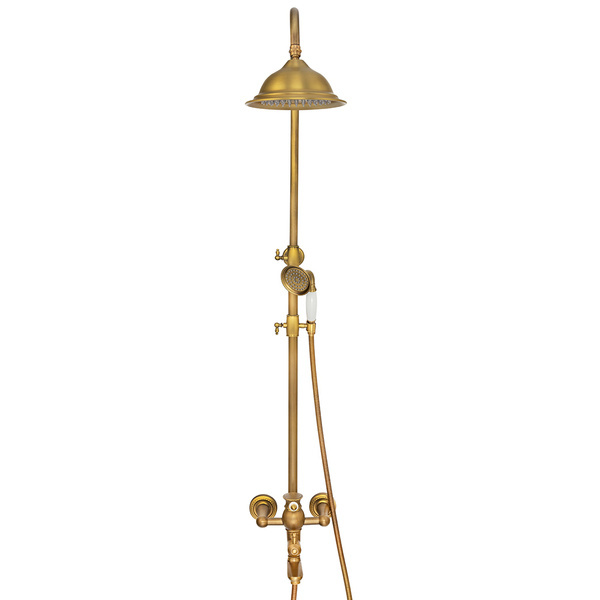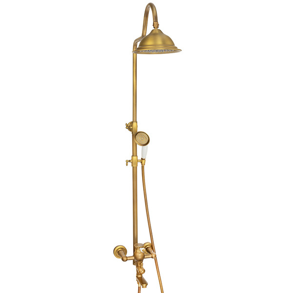 Nástěnná sprchová sada ve verzi Premium se vyznačuje nejvyšší kvalitou výroby. Baterie je vyrobena z mosazi a celá sada je pokryta lesklým zlatým povrchem. Keramická kartuše je zárukou bezporuchového provozu po dlouhou dobu. Baterie s dešťovou sprchou je navržena ve stylu RETRO.