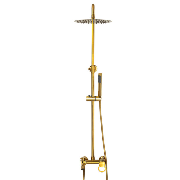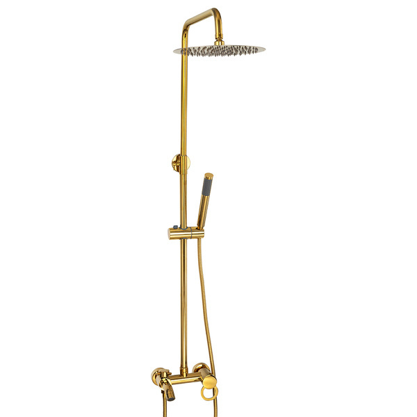 Nástěnná sprchová sada ve verzi Premium, která se vyznačuje nejvyšší kvalitou výroby. Baterie je vyrobena z mosazi a celá sada je pokryta lesklým zlatým povrchem. Keramická kartuše zajišťuje bezporuchový provoz po dlouhou dobu. Baterie s dešťovou sprchou je navržena ve stylu RETRO.