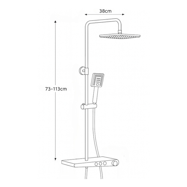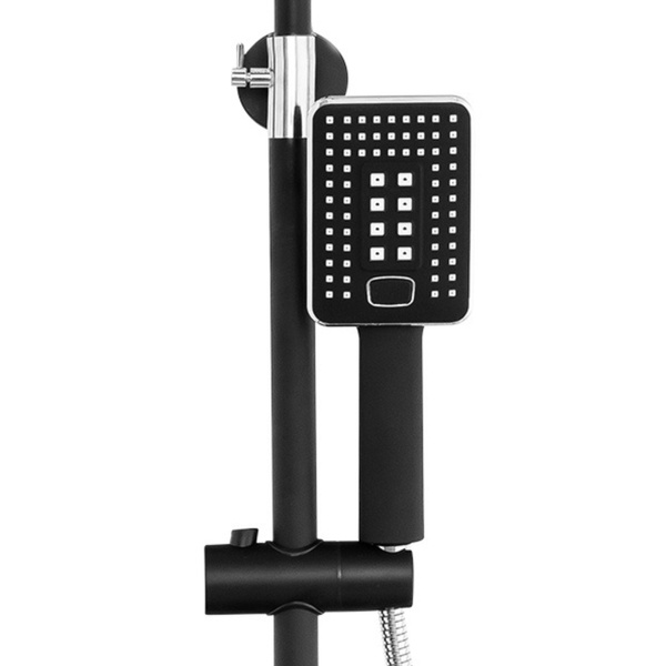 Moderní nástěnná sprchová sada Livia v elegantním černém provedení je kombinací prémiového designu s maximální funkčností. Tělo baterie je vyrobeno z vysoce kvalitní mosazi, což zajišťuje trvanlivost a odolnost proti korozi. Sada obsahuje velkou, čtvercovou dešťovou sprchu, moderní ruční sprchu a praktickou poličku na kosmetiku.