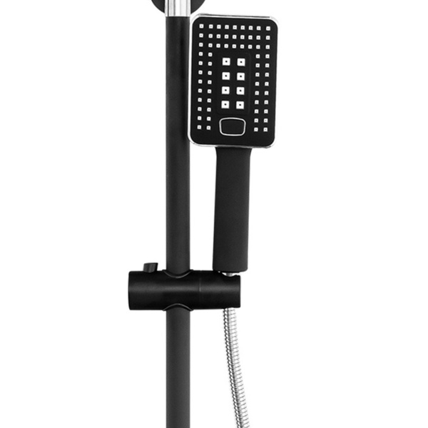 Moderní nástěnná sprchová sada Elena v elegantním černém provedení spojuje prémiový design s maximální funkčností. Tělo baterie je vyrobeno z vysoce kvalitní mosazi, což zajišťuje trvanlivost a odolnost proti korozi. Sada obsahuje velkou, čtvercovou dešťovou sprchu, moderní ruční sprchu a praktickou poličku na kosmetiku.