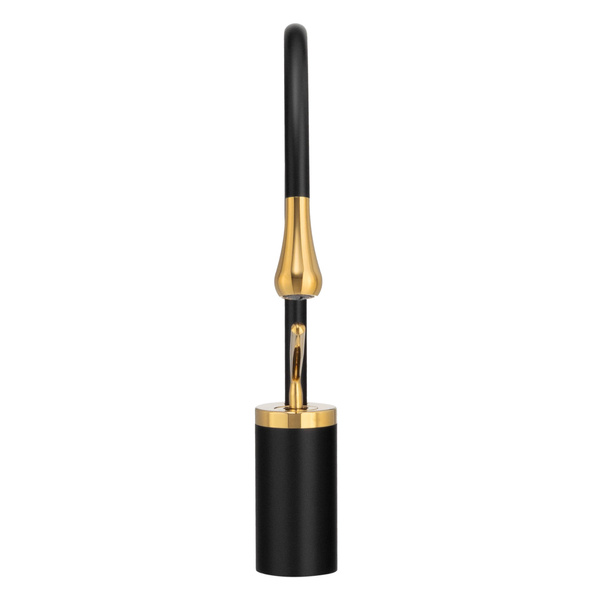 Umyvadlová baterie LUCA je výjimečné spojení minimalistického designu s luxusním černo-zlatým provedením. Štíhlá, válcová základna a vysoké, jemně prohnuté výtokové ramínko s lehce rozšířeným zakončením dodávají baterii subtilní lehkost a zároveň tvoří výrazný dekorativní prvek každé koupelny.