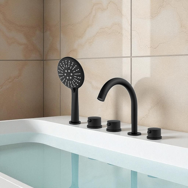 5-otvorová vaňová batéria v matnej čiernej farbe je ideálnym spojením minimalistického dizajnu, komfortu a trvácnosti. Jej geometrický tvar a hlboká čierna farba podčiarkujú štýl moderných kúpeľní a dodávajú im výnimočný charakter.