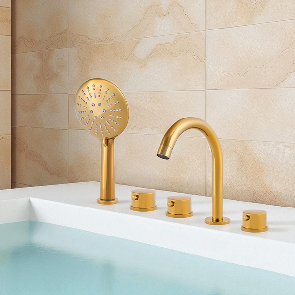 5-otvorová vaňová batéria v zlatej farbe je dokonalým spojením moderného dizajnu, komfortu pri používaní a nadčasového luxusu. Jej geometrický, minimalistický tvar v kombinácii s elegantným zlatým povrchom dodáva kúpeľni výnimočný charakter.