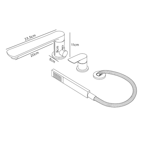 Vyrobená z odolnej mosadze, je rezistentná voči korózii a poškodeniu. Keramická kartuša umožňuje presné ovládanie teploty a tlaku vody, zatiaľ čo integrovaný perlátor znižuje spotrebu vody až o 50 %. 3-otvorový montážny systém zaisťuje jednoduchú inštaláciu a súčasťou setu je výpusť s dĺžkou 23,5 cm a praktická ručná sprcha.