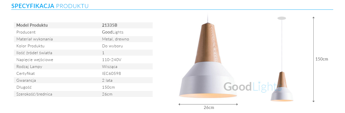 Představujeme unikátní závěsnou lampu vyrobenou z vynikající kvality kovu a dřeva. Je to jedinečný produkt, který se hodí jak do moderních industriálních interiérů, tak do klasicky zařízených místností, kde bude tvořit prvek přitahující pozornost. Produkt je vybaven jediným zdrojem světla, který dokonale osvětluje interiér.