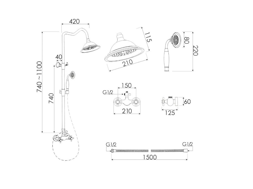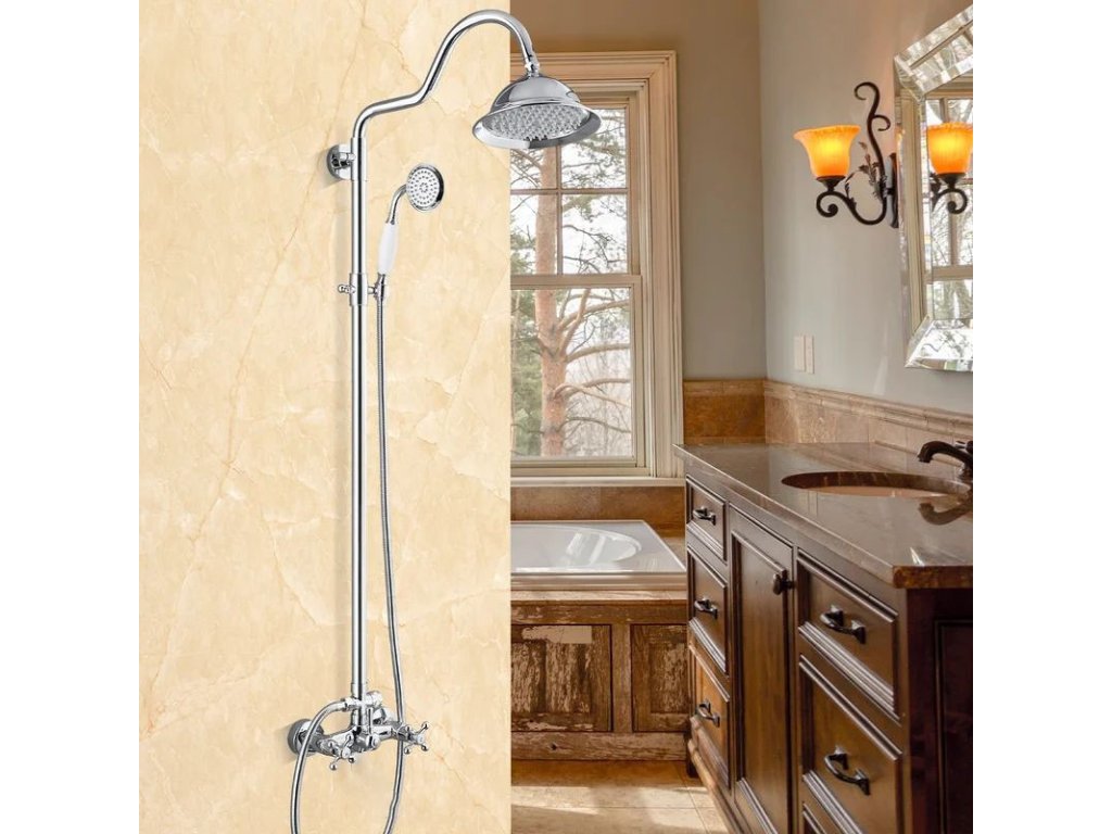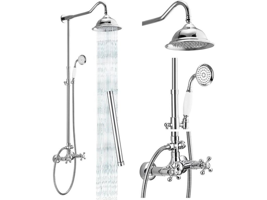Nástěnná sprchová baterie retro S-1158 se sprchovým setem, chrom