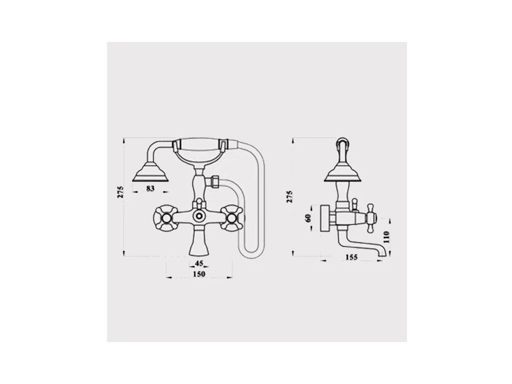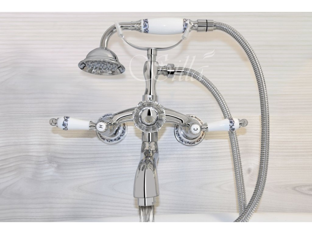 Nástěnná vanová baterie Retro se sprchovým setem S-1126 chrom