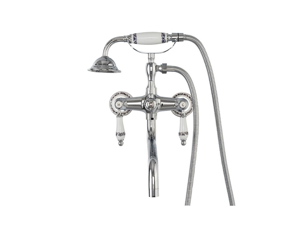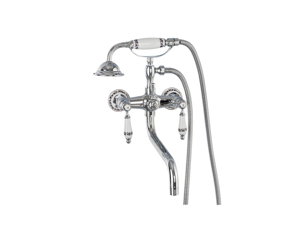 Nástěnná vanová baterie Retro se sprchovým setem S-1184 chrom