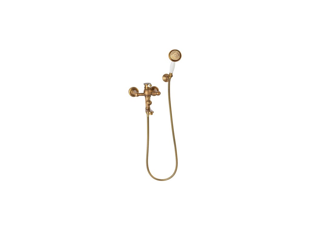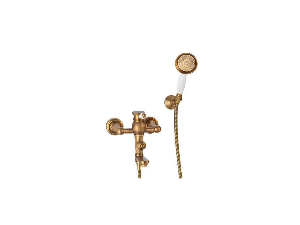 Nástěnná vanová baterie Retro se sprchovým setem S-1185 staré zlato