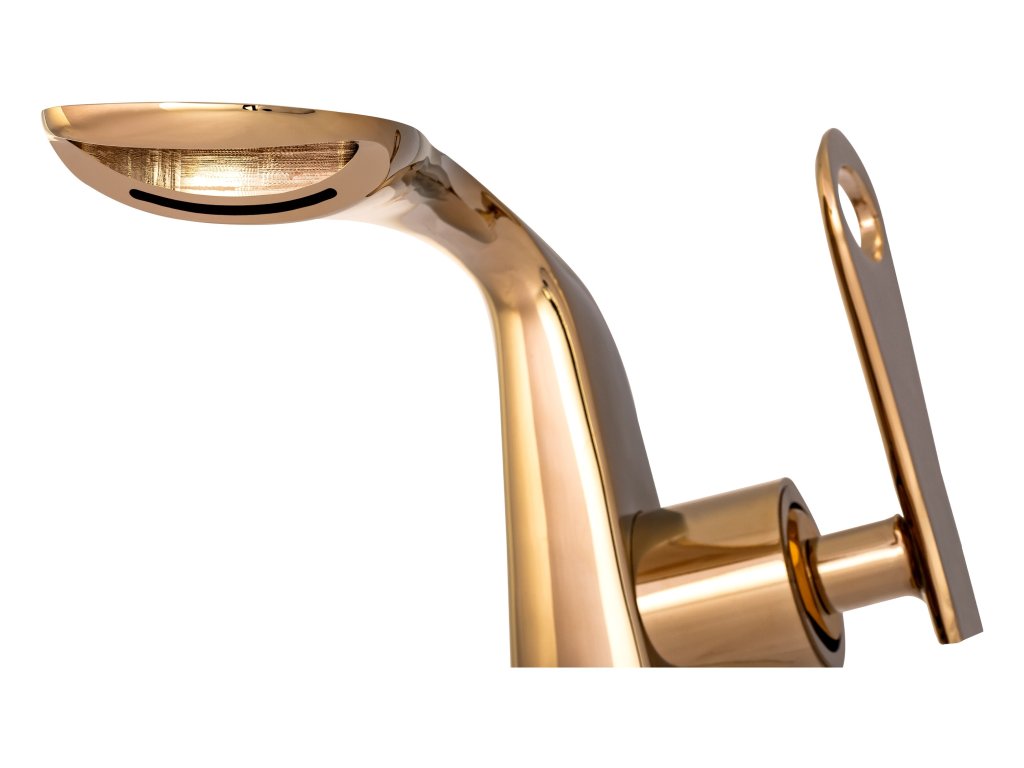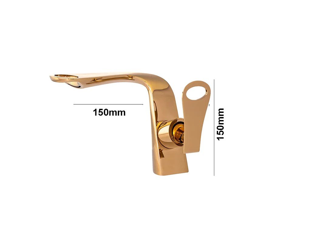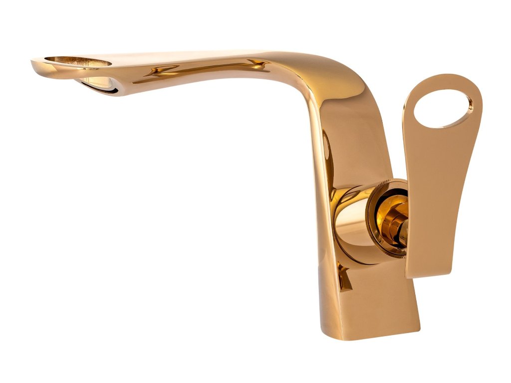 Umyvadlová baterie nízká zlatá je dodávána s praktickou keramickou hlavou a horním provzdušňovačem. Módní tvar mosazného těla pokrytého zlatým povrchem je nejvyšší kvality. Díky této technice je umyvadlová baterie chráněna proti korozi, nečistotám a zabarvení. Tento model je určen k montáži na pracovní desku.