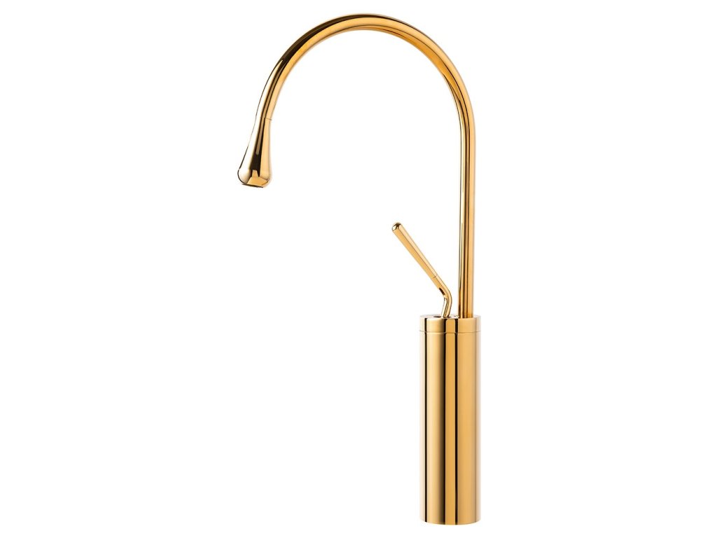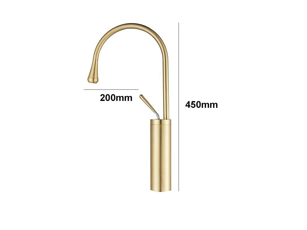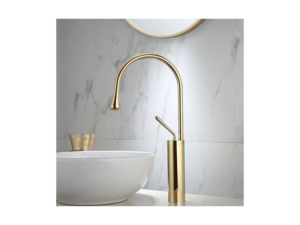 Umyvadlová baterie vysoká zlatá je dodávána s praktickou keramickou hlavou a horním provzdušňovačem. Módní tvar mosazného těla pokrytého zlatým povrchem je nejvyšší kvality. Díky této technice je umyvadlová baterie chráněna proti korozi, nečistotám a zabarvení. Tento model je určen k montáži na pracovní desku.