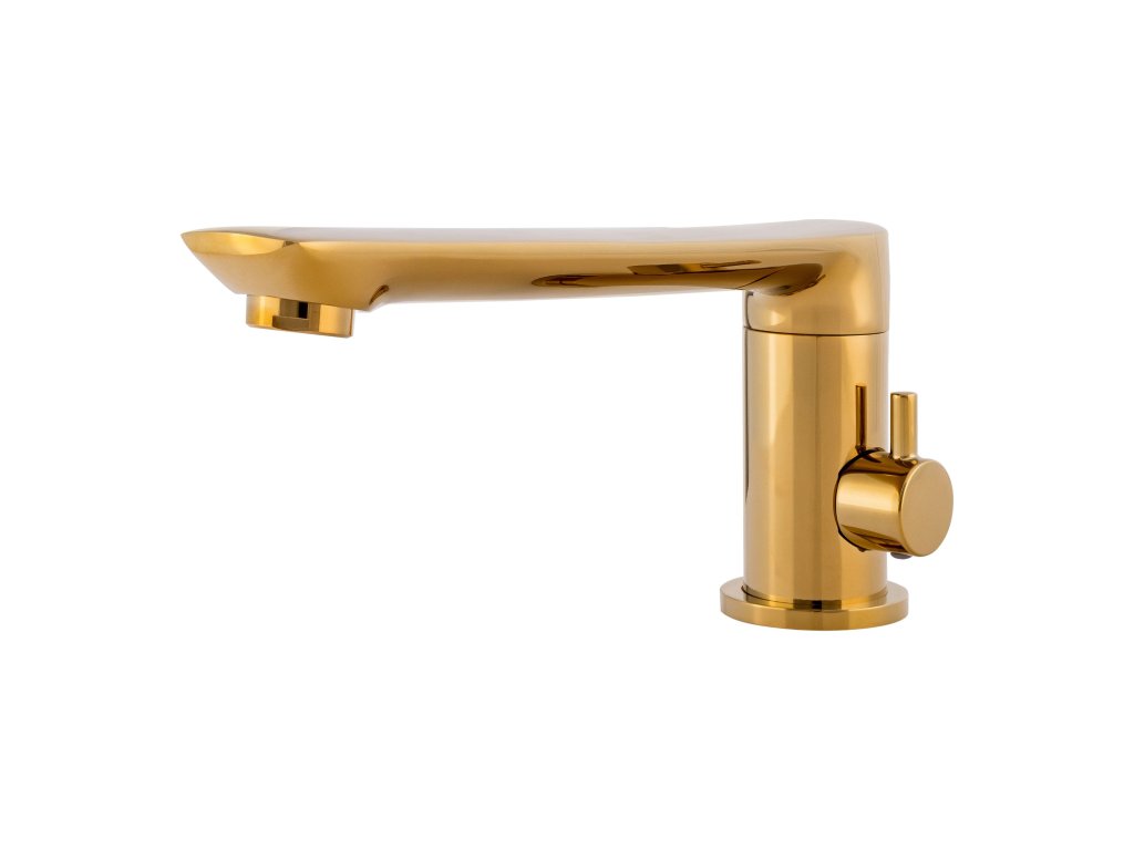 → Štíhlá oblouková hubice a elegantní zlatá povrchová úprava
