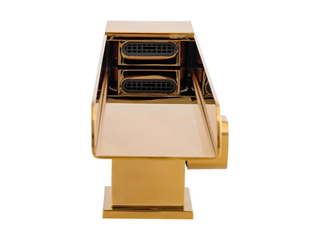→ Štíhlá oblouková hubice a elegantní zlatá povrchová úprava